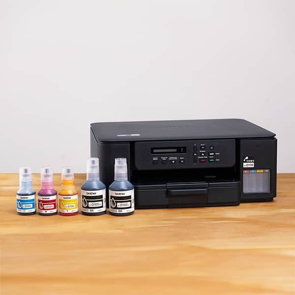 - Duas garrafas de tinta preta BTD100BK de ultra rendimento (até 7.500 páginas/cada)